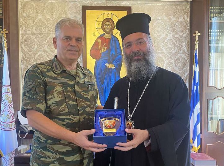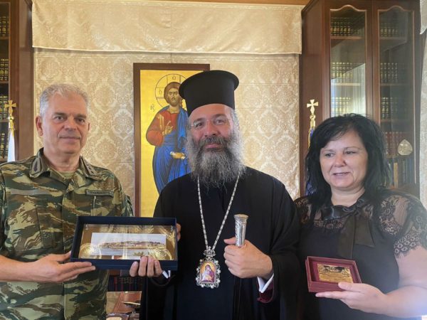 Η συνάντηση πραγματοποιήθηκε στα Γραφεία της Ιεράς Μητροπόλεως παρουσία της συζύγου του νέου Διοικητή.