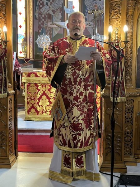 Προ της απολύσεως της Θείας Λειτουργίας, ο Σεβασμιώτατος καλωσόρισε και παρουσίασε στο εκκλησίασμα με θερμούς λόγους τον Σεβασμιώτατο Σελευκείας, αναφερόμενος στην πολυετή προσφορά του στη Μητέρα μας Εκκλησία, το Πάνσεπτο Οικουμενικό Πατριαρχείο, παρά τους πόδας του Παναγιωτάτου Οικουμενικού μας Πατριάρχου κ.κ. ΒΑΡΘΟΛΟΜΑΙΟΥ, από θέσεων ευθύνης, όπως αυτές του Μεγάλου Αρχιδιακόνου και του Μεγάλου Πρωτοσυγκέλλου, καθώς και στο γεγονός ότι υπηρετεί ως Καθηγητής στην Πατριαρχική Ανωτάτη Εκκλησιαστική Ακαδημία Κρήτης. Ο Επίσκοπός συνεχάρη και επ’ εκκλησίας τον Σεβασμιώτατο κ. Θεόδωρο για την πρόσφατη επάξια εκλογή και χειροτονία του σε Μητροπολίτη Σελευκείας.