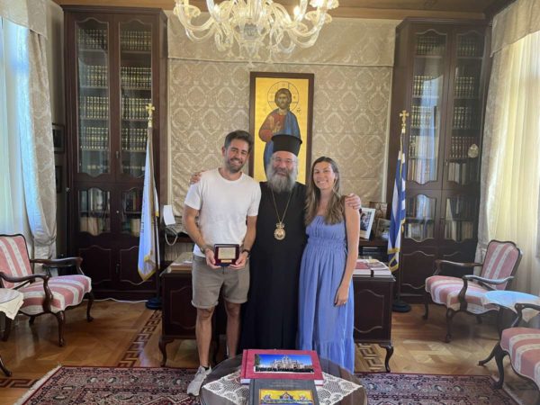 Επίσης, ο Σεβασμιώτατος δέχθηκε με χαρά το ζεύγος Στυλιανού και Μιλένας Ξερουδάκη, των οποίων τους γάμους τέλεσε προ ολίγων ημερών στον Ιερό Ναό Παναγίας Λατζιμά, και τους δαψίλευσε την αρχιερατική ευχή και ευλογία για το επικείμενο ταξίδι της επιστροφής τους στις Μπαχάμες, μόνιμο τόπο κατοικίας και διαμονής τους.