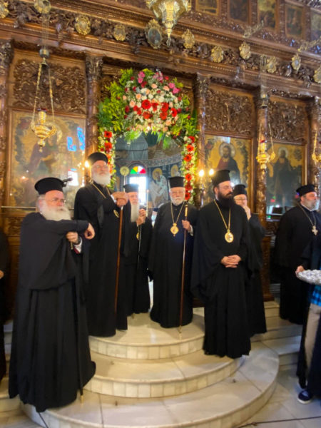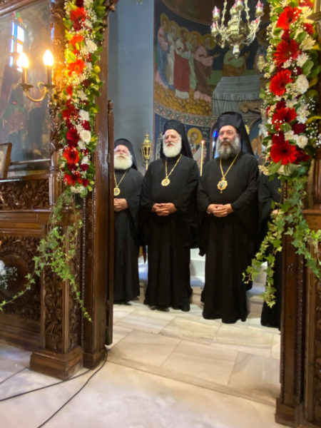 Παρέστησαν συμπροσευχόμενοι εκ του Ιερού Βήματος ο Σεβασμιώτατος Μητροπολίτης Λάμπης, Συβρίτου και Σφακίων κ. Ειρηναίος και οι Θεοφιλ. Επίσκοποι Αμορίου κ. Νικηφόρος, Ηγούμενος της Σταυροπηγιακής Μονής Βλατάδων Θεσσαλονίκης, και και Ευμενείας κ. Ειρηναίος, Ηγούμενος της Σταυροπηγιακής Μονής Γουβερνέτου Χανίων.