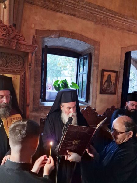 Παρέστησαν επίσης, είτε συλλειτουργούντες είτε συμπροσευχόμενοι, μεταξύ άλλων, οι Ηγούμενοι των Ιερών Μονών Προφήτου Ηλιού Ρουστίκων, Πανοσιολ. Αρχιμ. Ιωάννης Κουφουδάκης, Αγίου Γεωργίου Αρσανίου, Πανοσιολ. Αρχιμ. Ευφραίμ Μανουσάκης, Κουδουμά, Πανοσιολ. Αρχιμ. Μακάριος Σπυριδάκης, Αγίας Αναστασίας της Ρωμαίας, Πανοσιολ. Αρχιμ. Βασίλειος Παπαδάκης, ο Ιεροεπιστάτης του Ιερού Μετοχίου Αγίου Παύλου Γάλλου, Πανοσιολ. Αρχιμ. Άνθιμος Μαντζουράνης, ο εκ της Ιεράς Μονής Αρκαδίου Πανοσιολ. Αρχιμ. Θεολόγος Παπαλεβυζάκης και άλλοι αδελφοί της Μονής, ο εκ της Ιεράς Αρχιεπισκοπής Κρήτης Πανοσιολ. Αρχιμ. Χρυσόστομος Νικάκης, καθώς και άλλοι κληρικοί της Μητροπόλεώς μας και άλλων επαρχιών της Εκκλησίας Κρήτης.