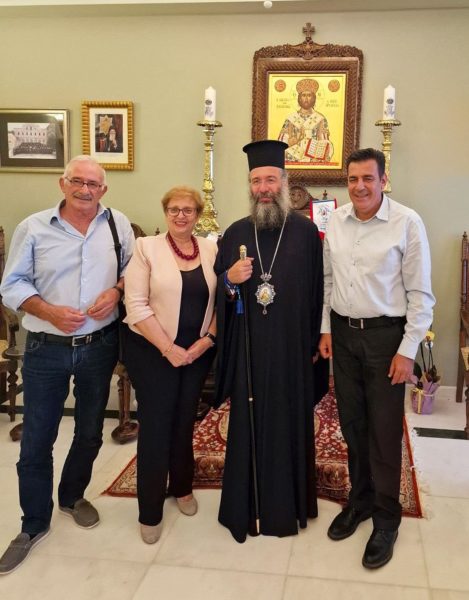 Το απόγευμα της Παρασκευής, ο Σεβασμιώτατος κ. Πρόδρομος δέχθηκε, στο Επισκοπείο της Μητροπόλεώς, τις ευχές πολλών ανθρώπων που προσήλθαν για να του ευχηθούν, μεταξύ των οποίων και η Αντιπεριφερειάρχης Ρεθύμνης κ. Μαρία Λιονή, που κατά την πρωινή Θεία Λειτουργία απουσίαζε σε προγραμματισμένες υποχρεώσεις της στην Περιφέρεια Κρήτης στο Ηράκλειο. Η κ. Αντιπεριφερειάρχης, για μία ακόμη φορά, διαβεβαίωσε τον Σεβασμιώτατο για την αγαστή και άριστη συνεργασία και συνοδοιπορία σε όλα τα θέματα της τοπικής κοινωνίας για το καλό και για την πρόοδό της.