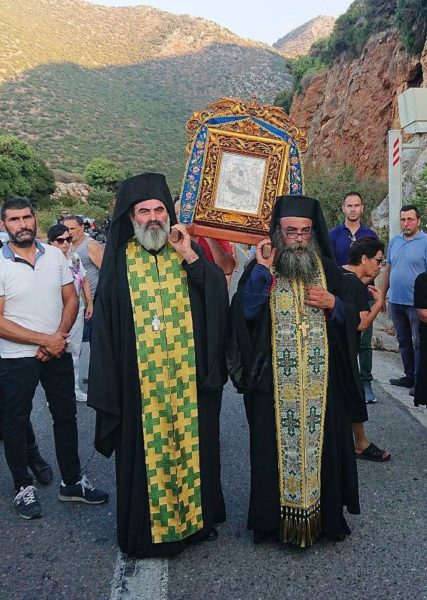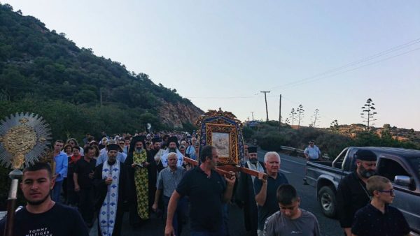 Με ιερή κατάνυξη, και την πάνδημη συμμετοχή του πιστού λαού, προεξάρχοντος του Σεβασμιωτάτου Μητροπολίτη Ρεθύμνης και Αυλοποτάμου κ. Προδρόμου, πραγματοποιήθηκε χθες το απόγευμα η καθιερωμένη λιτανεία για τη μεταφορά της περίπτυστης Ιεράς Εικόνος της Κοιμήσεως της Θεοτόκου από την Ιερά Μονή Τιμίου Προδρόμου Ατάλης-Μπαλή στο Ιερό Προσκύνημα της Παναγίας του Χάρακα.
