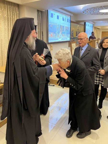 Μετά την ολοκλήρωση της εκδήλωσης, ο Σεβασμιώτατος διένειμε την αγιοβασιλόπιτα προς όλους και ακολούθησε κέρασμα στους φιλόξενους χώρους του Κέντρου «Θεομήτωρ». Το φλουρί της αγιοβασιλόπιτας έλαχε στην κ. Ελένη Κυριακάκη, Διευθύντρια του Συλλόγου «ΑΓΑΠΗ».
