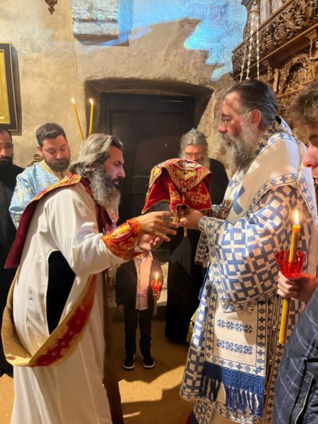 Ακολούθησε κέρασμα στο Αρχονταρίκι και εόρτια τράπεζα από την Ιερά Μονή.