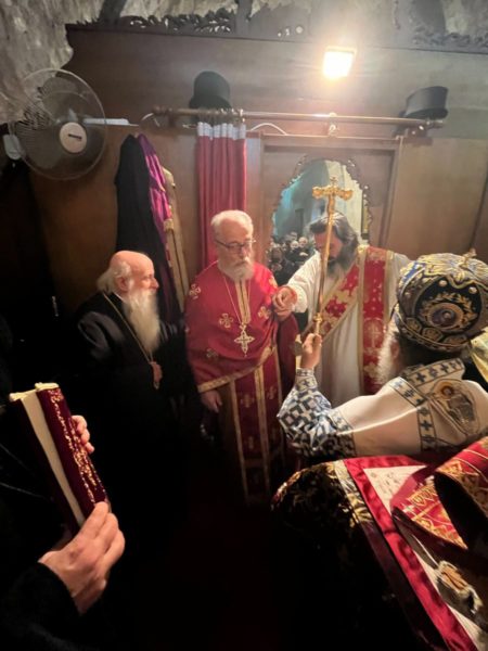 Παρέστη συμπροσευχόμενος από του Ιερού Βήματος ο Σεβασμιώτατος Μητροπολίτης Λάμπης, Συβρίτου και Σφακίων κ. Ειρηναίος, ο οποίος ευχήθηκε κατάλληλα προς τον νεοχειροτονηθέντα Πρεσβύτερο.