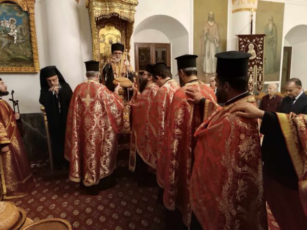 Τους ύμνους κατά τον Εσπερινό, τον Όρθρο και την Θεία Λειτουργία απέδωσε η χορωδία του Συλλόγου Ιεροψαλτών Ρόδου.