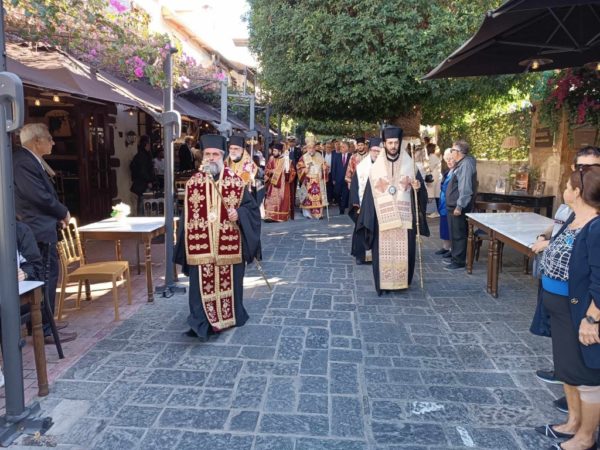 Ακολούθησε η λιτάνευση της Ιεράς Εικόνος και του τιμίου Λειψάνου του Αγίου και της εφεστίου Εικόνας της Παναγίας Σκιαδενής στο κέντρο της πόλεως, συνοδεία της φιλαρμονικής του Δήμου Ρόδου.