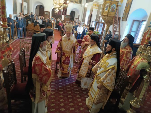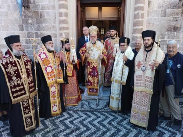 Την κυριώνυμη ημέρα της μνήμης του Αγίου Πολιούχου, της Ακολουθίας του Όρθρου χοροστάτησε ο Θεοφιλέστατος Επίσκοπος Στρατονικείας κ. Στέφανος, ενώ της Θείας Λειτουργίας προέστη ο Σεβασμιώτατος Μητροπολίτης Ρόδου κ. Κύριλλος, συλλειτουργούντων των Σεβασμιωτάτων Μητροπολιτών Κώου και Νισύρου κ. Ναθαναήλ και Νουβίας κ. Σάββα και των Θεοφιλεστάτων Επισκόπων Στρατονικείας κ. Στεφάνου και Ολύμπου κ. Κυρίλλου.