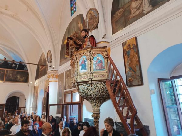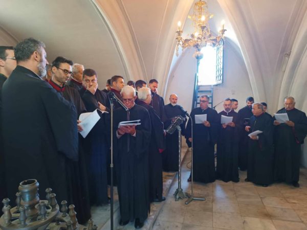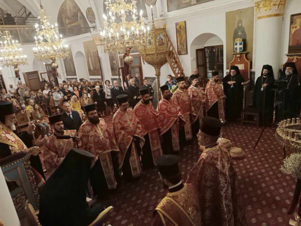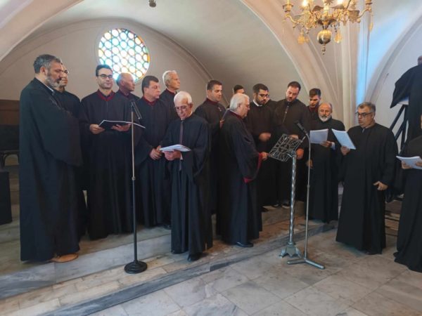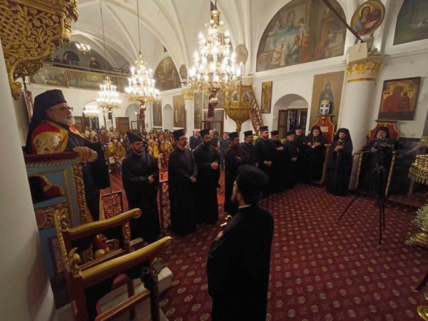 Τους ύμνους κατά τον Εσπερινό, τον Όρθρο και την Θεία Λειτουργία απέδωσε η χορωδία του Συλλόγου Ιεροψαλτών Ρόδου.