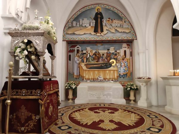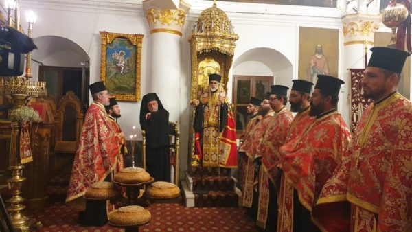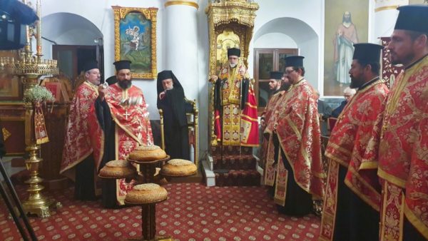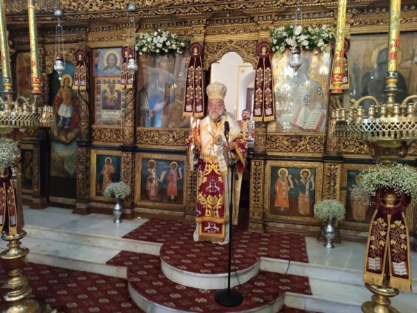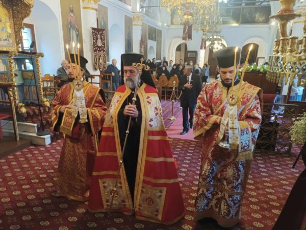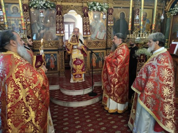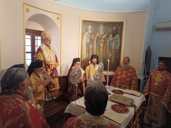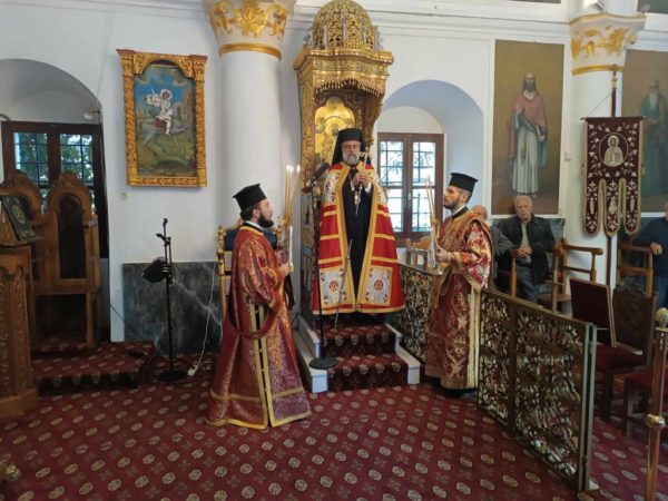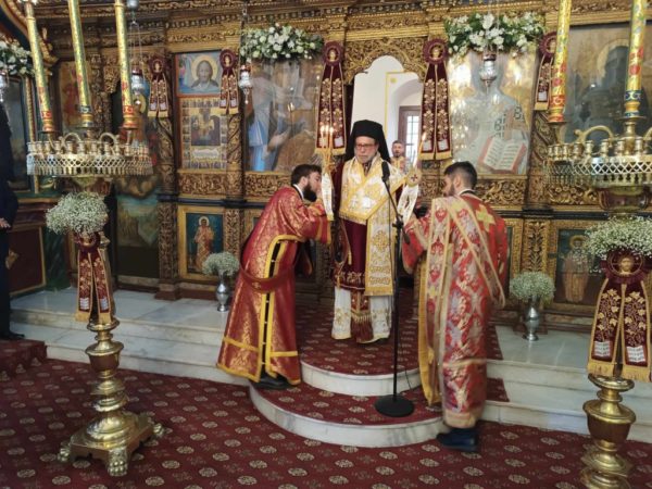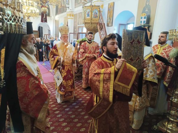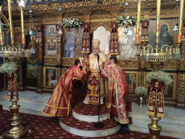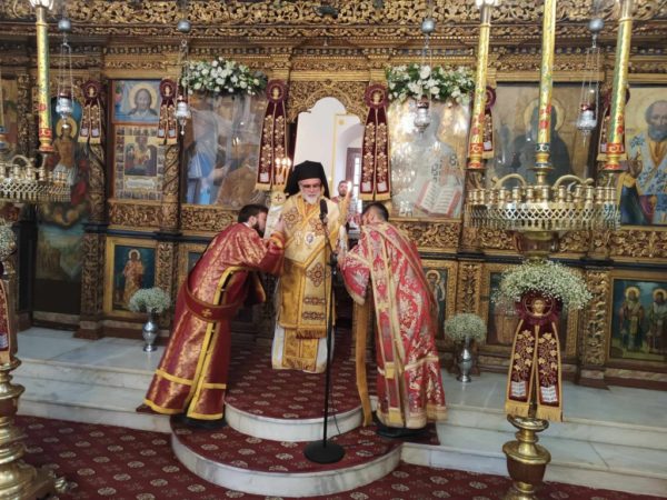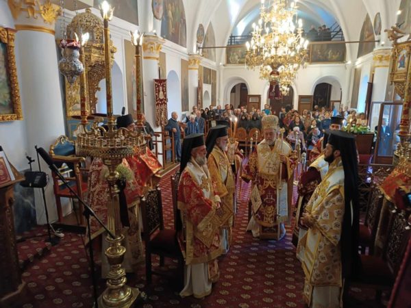Την κυριώνυμη ημέρα της μνήμης του Αγίου Πολιούχου, της Ακολουθίας του Όρθρου χοροστάτησε ο Θεοφιλέστατος Επίσκοπος Στρατονικείας κ. Στέφανος, ενώ της Θείας Λειτουργίας προέστη ο Σεβασμιώτατος Μητροπολίτης Ρόδου κ. Κύριλλος, συλλειτουργούντων των Σεβασμιωτάτων Μητροπολιτών Κώου και Νισύρου κ. Ναθαναήλ και Νουβίας κ. Σάββα και των Θεοφιλεστάτων Επισκόπων Στρατονικείας κ. Στεφάνου και Ολύμπου κ. Κυρίλλου.