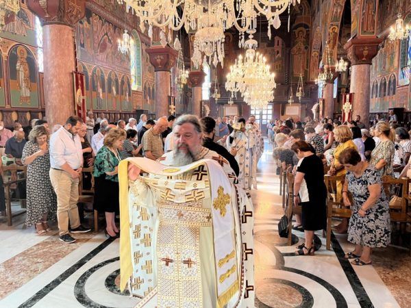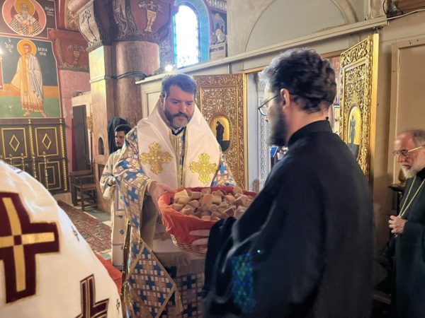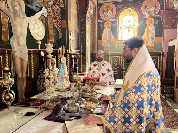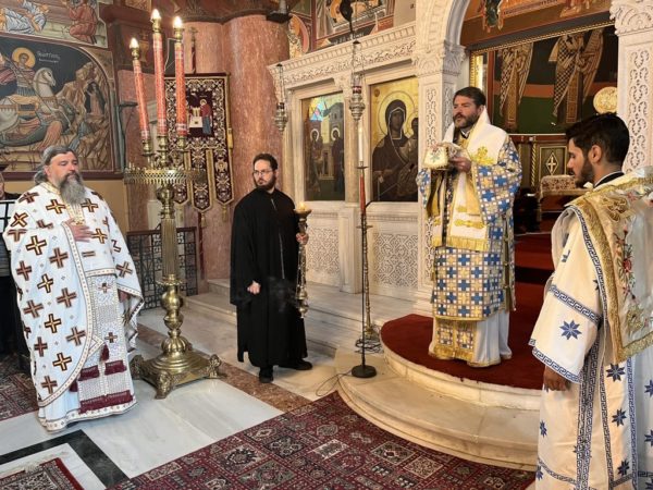 Ο Σεβασμιώτατος χοροστάτησε του Όρθρου και προέστη της Θείας Λειτουργίας, πλαισιούμενος από τον Πρωτοσύγκελλο της Ιεράς Μητροπόλεως και Αρχιμανδρίτη του Οικουμενικού Θρόνου κ. Θεωνά Καμπέρη, τον Καθηγούμενο της Ιεράς Μονής Παραμυθίας Αρχιμανδρίτη κ. Άνθιμο, τον Γενικό Αρχιερατικό Επίτροπο και Πρωτοπρεσβύτερο του Οικουμενικού Θρόνου π. Ιωάννη Χαλκιά, τον Γραμματέα της Ιεράς Μητροπόλεως Πρωτοπρεσβύτερο π. Εμμανουήλ Σκλιβάκη και τον Διάκονο π. Νικηφόρο Γιαννίκο. Συμπροσευχήθηκαν ο Σεβασμιώτατος Μητροπολίτης Ρόδου κ. Κύριλλος, ο Σεβασμιώτατος Μητροπολίτης Νουβίας κ. Σάββας και ο Θεοφιλέστατος Επίσκοπος Ολύμπου κ. Κύριλλος.