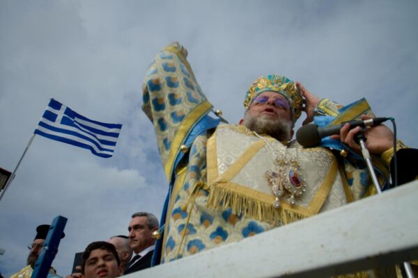 Την κυριώνυμη ημέρα της εορτής (Δευτέρα 6 Ιανουαρίου 2020) ο Σεβασμιώτατος χοροστάτησε του Όρθρου, τέλεσε την Θεία Λειτουργία, (συλλειτουργούντος του Θεοφιλεστάτου αγίου Ολύμπου) και την Ακολουθία του Μεγάλου Αγιασμού των Θεοφανείων στον Καθεδρικό Ιερό Ναό του Ευαγγελισμού της Θεοτόκου και αμέσως μετά με τον ιερό Κλήρο και τις Αρχές του τόπου μετέβη στον καθορισμένο τόπο, στό λιμάνι του Μανδρακίου, όπου έλαβε χώρα η τελετή της καταδύσεως του Τιμίου Σταυρού και του Αγιασμού των υδάτων.