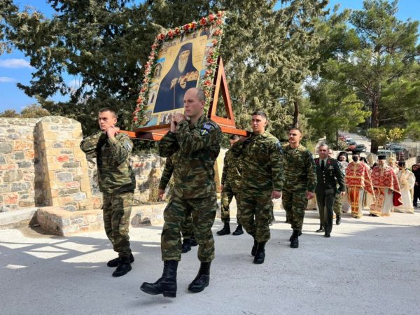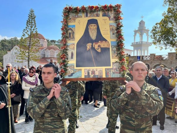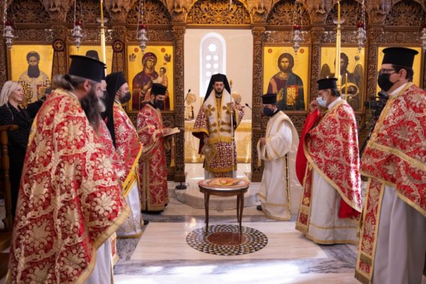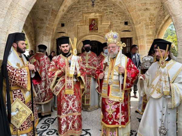 Ο Σεβασμιώτατος χοροστάτησε του Όρθρου της Κυριακής, προέστη της Θείας Λειτουργίας, συλλειτουργούντος του Θεοφιλεστάτου Επισκόπου Ολύμπου κ. Κυρίλλου και συμπροσευχομένου του Σεβασμιωτάτου Μητροπολίτου πρ. Γάνου και Χώρας κ. Αμφιλοχίου, και στη συνέχεια της Λιτανείας της τιμίας Κάρας και της Εικόνας του Οσίου.