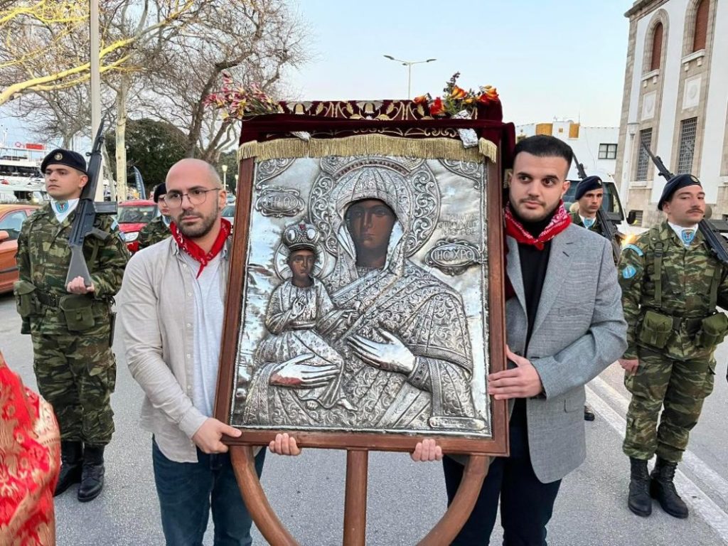 Την Ιερή Εικόνα υποδέχθηκε ο Σεβασμιώτατος Μητροπολίτης Ρόδου κ. Κύριλλος στο Μανδράκι το απόγευμα της Παρασκευής 24 Μαρτίου 2023, παρουσία βουλευτών του Νομού και εκπρόσωπων των τοπικών αρχών του νησιού.