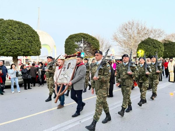 Ακολούθησε η Λιτάνευση της Ιεράς Εικόνας, πλαισιωμένη από στρατιωτικό άγημα, προς τον πανηγυρίζοντα Ιερό Καθεδρικό Ευαγγελισμού της Θεοτόκου. Στη συνέχεια τελέστηκε δέηση και ο Μέγας Πανηγυρικός Εσπερινός της εορτής του Ευαγγελισμού της Θεοτόκου.