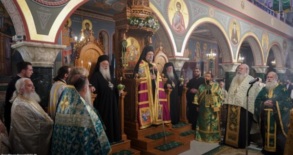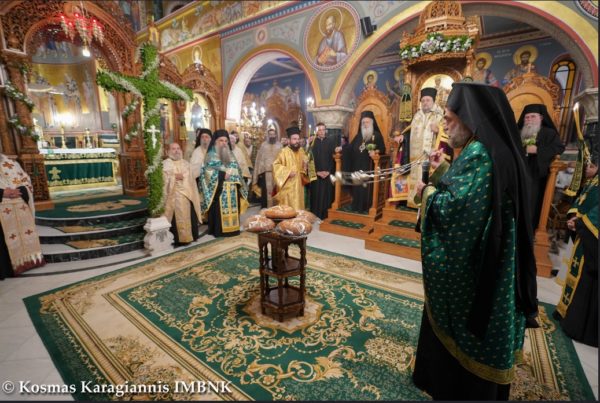 Το απόγευμα της Τρίτης 13 Σεπτεμβρίου, παραμονή της μεγάλης εορτής, τελέστηκε Πολυαρχιερατικός Εσπερινός χοροστατούντος του Μητροπολίτου Γέροντος Πριγκηποννήσων κ. Δημητρίου, ενώ συμμετείχαν οι Μητροπολίτες Βεροίας, Ναούσης και Καμπανίας κ. Παντελεήμων, Φιλίππων Νεαπόλεως και Θάσου κ. Στέφανος, ο Επίσκοπος Ρωγών κ. Φιλόθεος και ο οικείος ιεράρχης ο Μητροπολίτης Σερβίων και Κοζάνης κ. Παύλος, ο οποίος ευχαρίστησε τους Αγίους Αρχιερείς για τη συμμετοχή τους στην Ιερά Πανήγυρη.