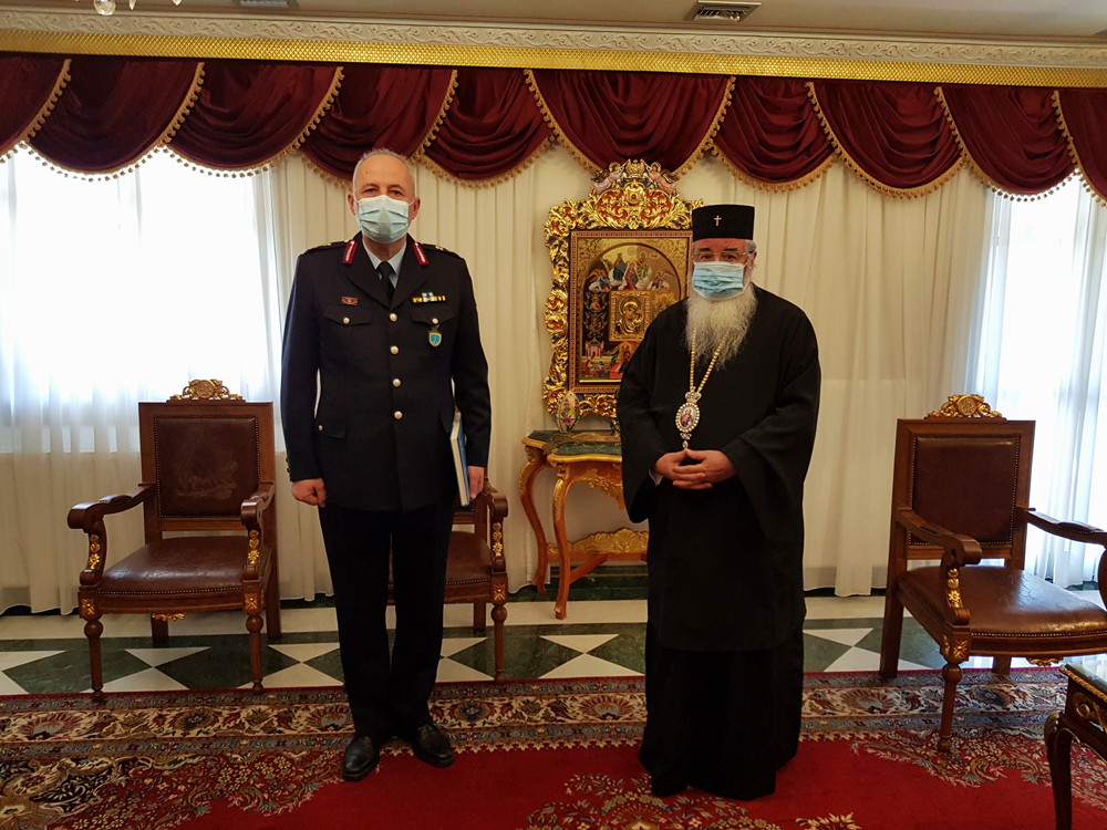 Κατά τη διάρκεια της επίσκεψης, ο Σεβασμιώτατος Μητροπολίτης κ. Παύλο ευχήθηκε στο Γενικό Περιφερειακό Αστυνομικό Διευθυντή καλή τύχη και δύναμη στα νέα του καθήκοντα, ενώ μέσα σε εγκάρδιο κλίμα συζητήθηκαν θέματα που άπτονται της σύγχρονης ελληνικής κοινωνίας και αφορούν το πεδίο ενδιαφέροντος των τοπικών αστυνομικών και εκκλησιαστικών Αρχών.