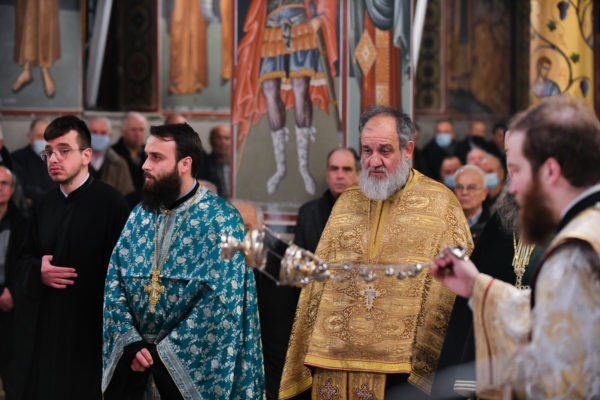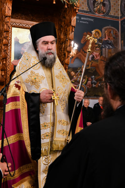 Τέλος, ο Σεβασμιώτατος απένειμε το οφφίκιο του Σταυροφόρου Οικονόμου στον καλό εφημέριο του ιερού Ναού Αγ. Αντωνίου Στρυμονικού, π. Αντώνιο Παπαγερίδη, επαινώντας με αυτό τον τρόπο την καρποφόρο ιερατική του διακονία στην Εκκλησία.
