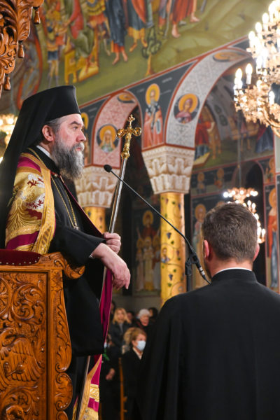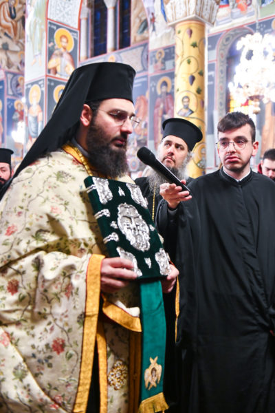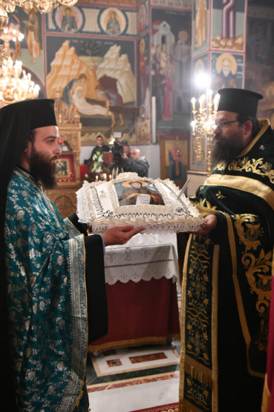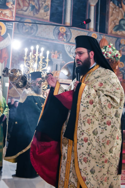 Τέλος, ο Σεβασμιώτατος απένειμε το οφφίκιο του Σταυροφόρου Οικονόμου στον καλό εφημέριο του ιερού Ναού Αγ. Αντωνίου Στρυμονικού, π. Αντώνιο Παπαγερίδη, επαινώντας με αυτό τον τρόπο την καρποφόρο ιερατική του διακονία στην Εκκλησία.