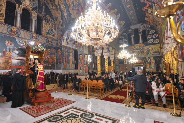 Προ της απολύσεως της ιεράς ακολουθίας, ο Σεβ. Ποιμενάρχης της Σερραϊκής Εκκλησίας κ. Θεολόγος, ομίλησε με δυνατό, αφυπνιστικό και πύρινο τρόπο στο πυκνότατο εκκλησίασμα, εμπνεόμενος από τον πάντοτε επίκαιρο λόγο του μεγάλου ασκητού της ερήμου, Αγ. Αντωνίου, όπως τον διέσωσε ο βιογράφος και μαθητής του Άγ. Αθανάσιος, υπογραμμίζοντας μεταξύ άλλων και τα εξής: