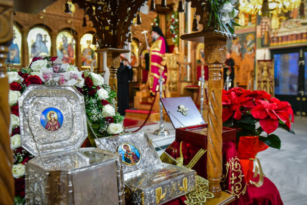 Το απόγευμα της Παρασκευής 20 Δεκεμβρίου 2024, ο Σεβασμιώτατος Μητροπολίτης Σερρών και Νιγρίτης κ. Θεολόγος, απέθεσε επί της Αγ. Τραπέζης του ΘΙερού Ναού Αγίου Σπυρίδωνος Σερρών, κατά την εκκλησιαστική τάξη, αποτμήματα εκ των τιμίων ιερών λειψάνων των Αγ. ενδόξων, οσιάθλων Πατέρων της ιεράς Λαύρας του Αγίου Σάββα Ιεροσολύμων (+20/3), της Αγ. ενδόξου νεομάρτυρος Ακυλίνης της Ζαγκλιβερινής (+27/9), του Αγίου ενδόξου μάρτυρος Μαρδαρίου (+13/12) και του Αγίου Μοδέστου, Αρχιεπισκόπου Ιεροσολύμων (+16/12) και στη συνέχεια τελέσθηκε ο Εσπερινός των Εγκαινίων.