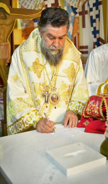 «Η σημερινή ιερά ακολουθία των Εγκαινίων, καλλιεργεί το πνεύμα της ανανεώσεως του έσω της καρδίας ανθρώπου. Τα ιερά εγκαίνια ενός νέου Ναού είναι ένα κάλεσμα του Θεού, δια της Εκκλησίας Του, στον καθένα μας, να γίνουμε άνθρωποι νέοι, κατοικητήρια έμψυχα της τρισηλίου Θεότητος, ναοφόροι και θεοφόροι. Η αγία Εκκλησίας μας καλείται, ως εκ της φύσεως της προελεύσεως και της αποστολής Της, να είναι το εύλαλο και διδακτικό εκείνο σχολείο της αγιότητος, της αρετής, της αγάπης. Οποιαδήποτε διαφορετική συμπεριφορά, που δεν έχει το πρόσημο της πίστεως, της ειλικρινείας, της ελευθερίας και της αγάπης προς τον συνάνθρωπο και μάλιστα τον πονεμένο και τσακισμένο άνθρωπο, συνιστά έκπτωση από το ήθος και την ποιότητα, που ευαγγελίσθηκε ο Σωτήρας μας Ιησούς Χριστός.