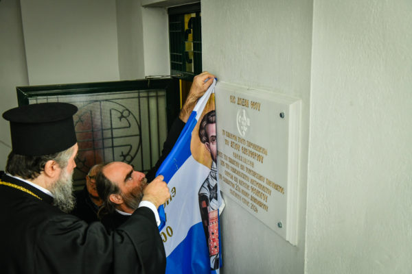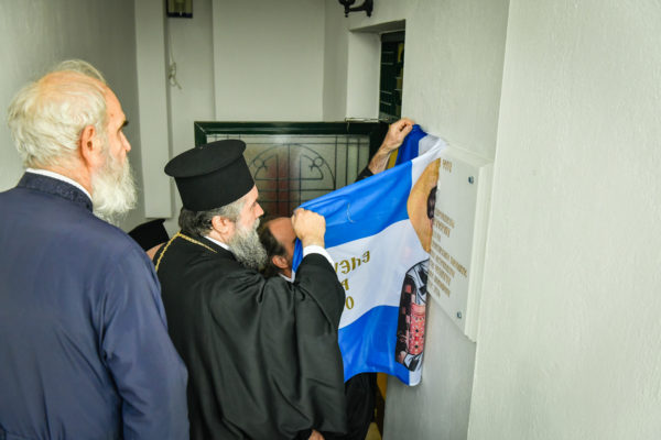 Στο τέλος της Θείας Λειτουργίας, σε ανάμνηση διηνεκή και αγαθή ενθύμηση της μεγάλης ημέρας του εγκαινισμού, απεκαλύφθη η εντετοιχισμένη πλησίον της κεντρικής πύλης του ιερού Παρεκκλησίου μνημειακή πλάκα, φέρουσα την επ’ αυτής λελαξευμένη σχετική αναθηματική επιγραφή των Εγκαινίων.