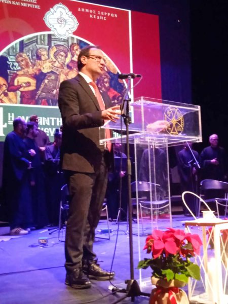 Την λαμπρή και άρτια οργανωμένη συναυλία χαιρέτησαν ο Σεβασμιώτατος Μητροπολίτης Σερρών και Νιγρίτης κ. Θεολόγος και ο Δήμαρχος Σερραίων κ. Αλ. Χρυσάφης, οι οποίοι ευχαρίστησαν, συνεχάρησαν με θερμούς λόγους και καλωσόρισαν στην πόλη των Σερρών τους εκλεκτούς χοράρχες και τα ταλαντούχα μέλη των χορωδιών, τους καταξιωμένους εργάτες της βυζαντινής υμνωδίας και της χορωδιακής θρησκευτικής μουσικής και όλους εκείνους, που κοπίασαν συμβάλλοντας στην διοργάνωση της συναντήσεως, που γοήτευσε και εφέτος το πολυπληθές ακροατήριο.
