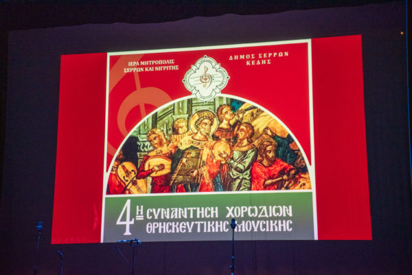 Την 4η συνάντηση χορωδιακής θρησκευτικής μουσικής συνδιοργάνωσαν η Ιερά Μητρόπολη Σερρών και Νιγρίτης και ο Δήμος Σερρών με την συμμετοχή, φέτος, έξι μουσικών χορωδιακών συνόλων. Δύο ημέρες, μουσικής πανδαισίς, από τον αδαπάνητο πλούτο της εκκλησιαστικής και θρησκευτικής μουσικής και ποιήσεως, προσφερόμενες από την τοπική Εκκλησία και τον Δήμο Σερρών, στο φιλόμουσο κοινό της ιστορικής πόλεως της Μακεδονίας.