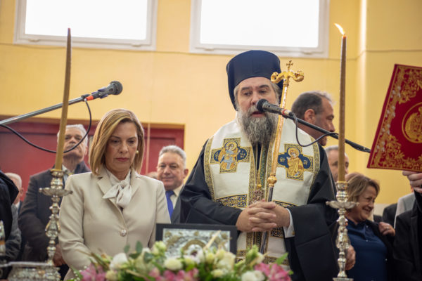 Αμέσως μετά τον θρησκευτικό όρκο, ο Σεβασμιώτατος ευχήθηκε σε όλους την ευλογία του Θεού στο έργο τους, δύναμη και κάθε επιτυχία στα καθήκοντά τους. Ετόνισε δε, ότι αναμένει με χρηστές ελπίδες μία αγαστή συνεργασία του Δήμου με την τοπική Εκκλησία, προς όφελος του τόπου και των πολιτών, διαβεβαιώνοντας ότι η Ιερά Μητρόπολις θα συνεχίσει να είναι θερμή συμπαραστάτης και αρωγός σε κάθε έργο προόδου και προκοπής, επ’ ωφελεία του κοινωνικού συνόλου. Ο Σεβασμιώτατος, περαίνων την προσλαλιά του, προσέφερε ως ευλογία στη νέα Δήμαρχο μία εικόνα της Παναγίας Ελεούσης, της «Νιγριτινής».