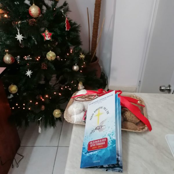 Εξάλλου, σήμερα, Δευτέρα 23 Δεκεμβρίου, προπαραμονή των αγίων Χριστουγέννων, μαθητές και μαθήτριες του Μουσικού και Ειδικού Σχολείου, του 14ου και 31ου Νηπιαγωγείου της πόλεως των Σερρών, καθώς και η Νεανική Χορωδίατης Εκκλησίας των Σερρών «Αγγέλων Φωνές», έψαλαν με τις γλυκόλαλες φωνές τους,στο Επισκοπείο Σερρών, τα πατροπαράδοτα εόρτια κάλαντα, στον Σεβ. κ. Θεολόγο, ο οποίος με την σειρά του,προσέφερε σε όλουςχριστουγεννιάτικες «ευλογίες», επικαλούμενος πλούσια την χάρη του αγίου Θεού, προς πνευματική υποδοχή και χριστιανοπρεπή εορτασμό της μεγάλης χριστιανικής εορτής, της γεννήσεως του Κυρίου μας Ιησού Χριστού.