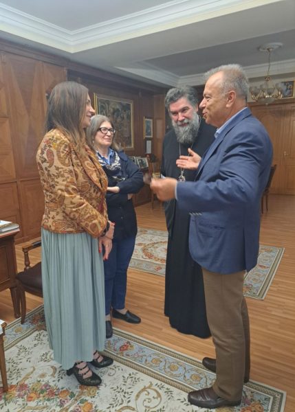 Ο Σεβασμιώτατος δέχθηκε την κ. Φλέσσα, στο Επισκοπείο Σερρών, συνοδευόμενη από τον πρώην Περιφερειακό Διευθυντή Εκπαιδεύσεως Κ. Μακεδονίας κ. Γ. Καρατάσιο, την Διευθύντρια του 3ου Γυμνασίου Σερρών κ. Χ. Αραπάκη και την Δημοσιογράφο Σερρών κ. Δ. Μετόκη και συζήτησε μαζί τους ζητήματα επικαιρότητος.
