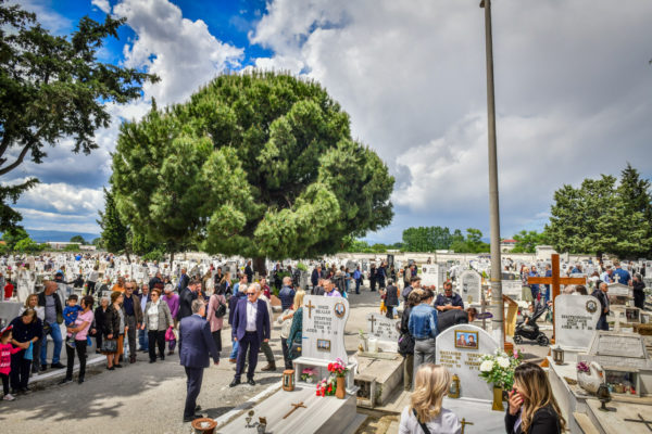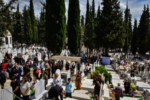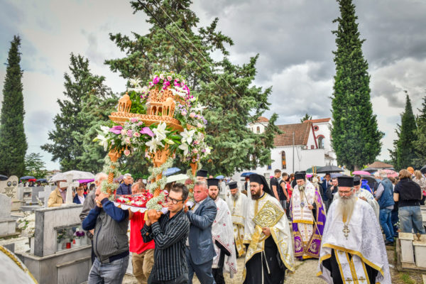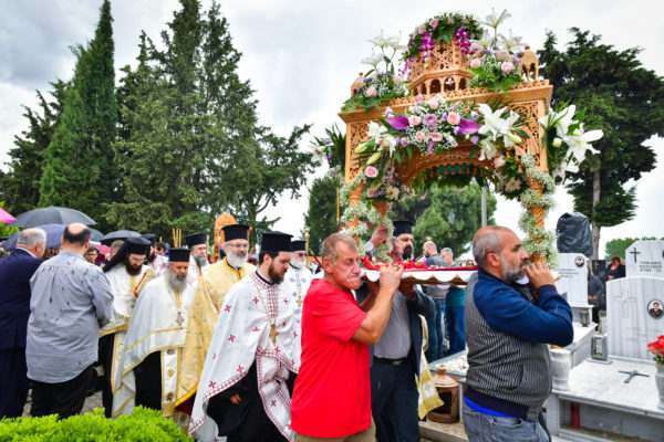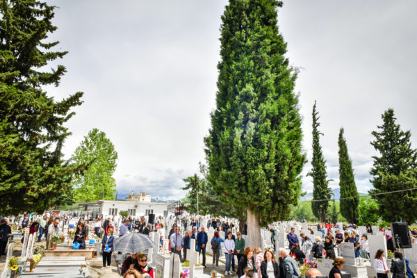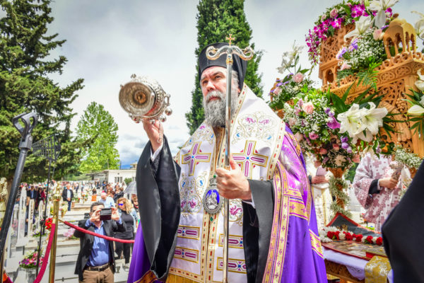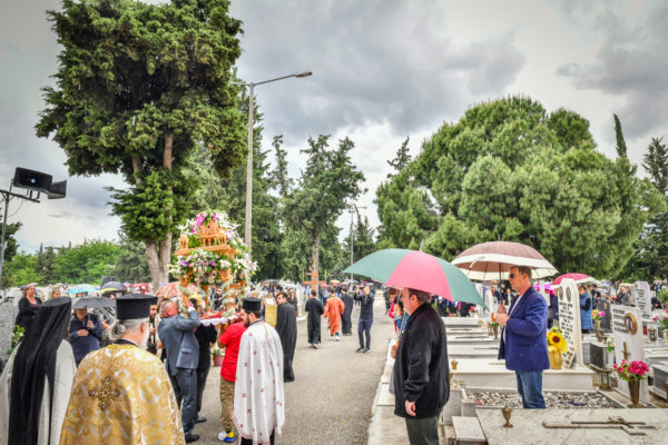Ακολούθως, στις 12:30 το μεσημέρι, στον χώρο έμπροσθεν του Ιερού Ναού Ζωοδόχου Πηγής του Β’ Κοιμητηρίου Σερρών, τελέσθηκε η Ιερά Ακολουθία του Επιταφίου θρήνου, κατά την διάρκεια της οποίας ο χοροστατών Σεβασμιώτατος Μητροπολίτης κ. Θεολόγος, ανέπεμψε ειδική δέηση υπέρ αναπαύσεως των ψυχών και των εκ της νόσου Covid-19, κεκοιμημένων αδελφών μας, οι οποίοι αναπαύονται στο ως είρηται Κοιμητήριο και ακολούθως πραγματοποιήθηκε η εντός του Κοιμητηρίου λιτάνευση του Επιταφίου.