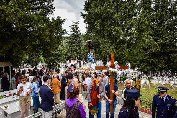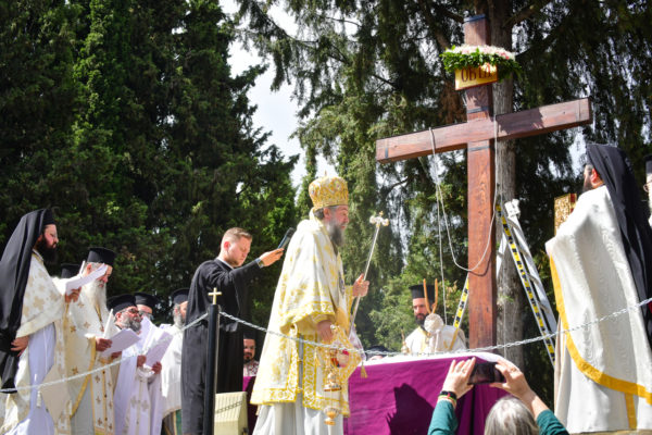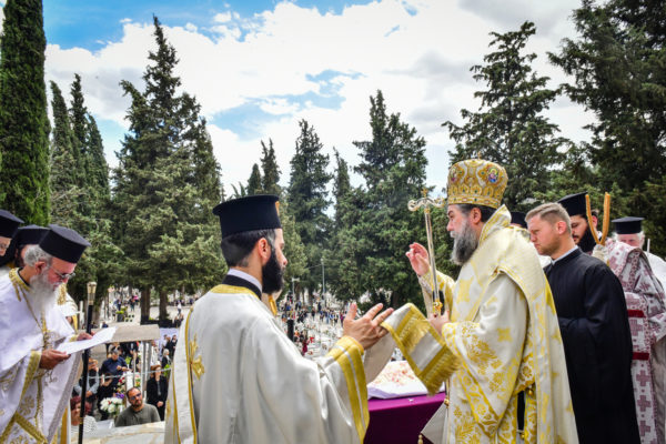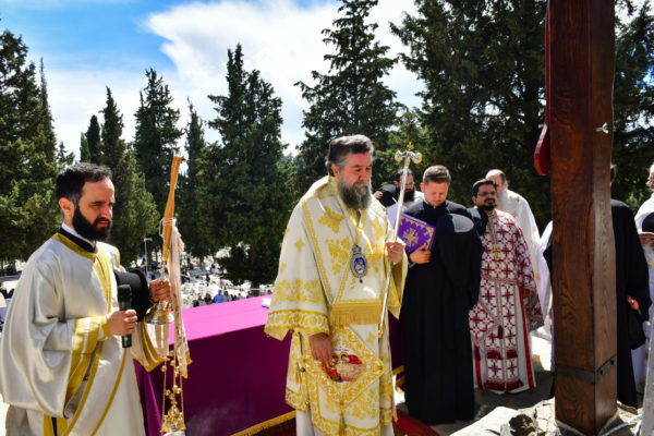 Στις 3:00 το μεσημέρι, ο Σεβασμιώτατος Μητροπολίτης κ. Θεολόγος μετέβη στο Α’ Κοιμητήριο Σερρών, όπου επί του ειδικώς διαμορφωμένου υπερώου, πάνω ακριβώς από το οστεοφυλάκιο, μαζί με τον ιερό κλήρο της πόλεως τέλεσαν την ιερά ακολουθία της Αποκαθηλώσεως και έψαλαν τα εγκώμια.
