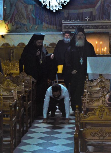 Προσφέρεσαι αυτοβούλως, ελευθέρως και αυτοπροαιρέτως στο Νυμφίο Χριστό και την παναμώμητο νύμφη Του, την αγίαν Ορθόδοξον Εκκλησίαν, ως έκφραση της φλογερής αγάπης σου προς Αυτόν, ανταποκρινόμενος στο θείο κάλεσμά Του, το οποίο από της μικρής σου ηλικίας αισθάνθηκες στην ζωή σου και καλλιέργησες με την βοήθεια των πνευματικών σου πατέρων στην Ιταλία αλλά και την Ελλάδα πλησίον μας. Λαμβάνεις ως αντίδωρο της προσφοράς σου αυτής, την ευλογία και την στοργή της αγίας Εκκλησίας μας, αυτού δηλαδή του ιδίου του Σωτήρος μας Ιησού Χριστού. Λαμβάνεις σήμερον το ευλογημένο μοναχικό ένδυμα, με ότι αυτό, άγιο και ουράνιο συμβολίζει, ως και το μοναχικό σου όνομα Βενέδικτος, το όνομά σου πλέον για την αιωνιότητα, ως ο «ευλογημένος» από τον Θεόν.