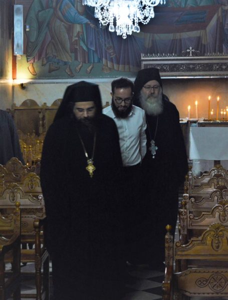 Η σκέπη των προστατών σου αγίων, εύχομαι να ευλογεί και να περιφρουρεί τον καθημερινό σου αγώνα, τον αγώνα της προσευχής, της παρθενίας, της υπακοής, της ακτημοσύνης, της ταπεινώσεως, της εντρυφήσεως στον ατίμητο και αδαπάνητο θησαυρό της διδασκαλίας των αγίων Πατέρων μας, ώστε να εκπληρώνεις θεαρέστως την μοναχική σου διακονία, να βιώνεις αγγελομιμήτως τον μοναχικό τρόπο ζωής, να δοξάζεις τον Θεόν, να αναπαύεις την αγία Εκκλησία μας, να προοδεύεις και να οδηγείσαι στο μακάριο τέλος, τον αγιασμό. Καλόν Παράδεισο, παιδί μου. Να ευαρεστήσεις εις τον Θεόν και στους ανθρώπους του Θεού και να αγιάσεις. Αμήν».