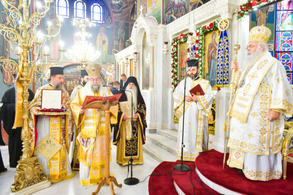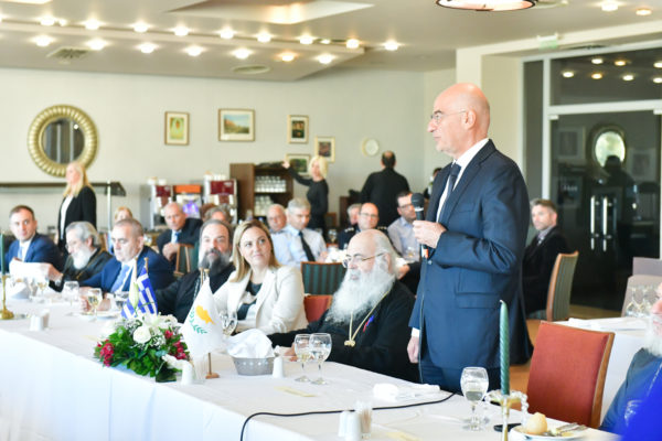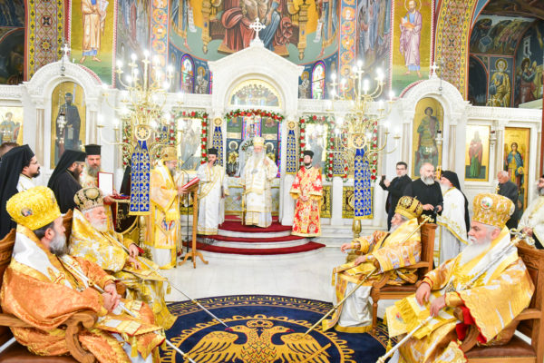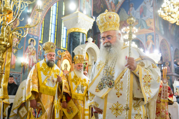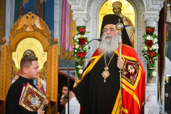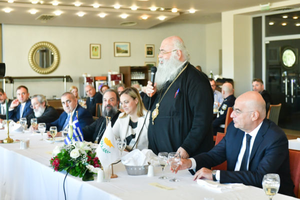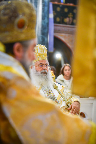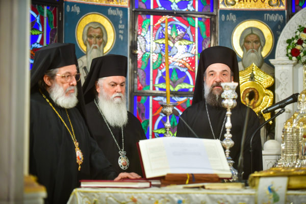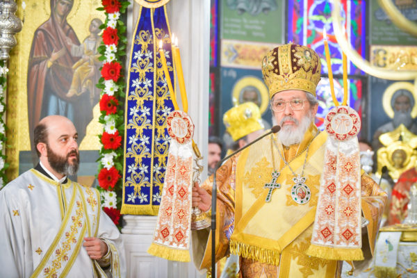 “Καί ἡμεῖς, τιμιώτατε Δέσποτα, ἁπαξάπαντες συναγωνιζόμεθα μαζί Σας ἐν ταῖς προσευχαῖς, διά τήν κατά Χριστόν ἀσφαλῆ πηδαλιουχίαν τῆς νοητῆς ὀλκάδος τῆς κατά Κύπρον ἁγιωτάτης Ἐκκλησίας, εὐχόμενοι ἐκ μέσης καρδίας εἰς τόν Ἅγιον Θεόν, τόν καλέσαντα ὑμᾶς εἰς χρόνους ὑψηλῆς ἱστορικῆς εὐθύνης καί διά τήν μαρτυρικήν Κύπρον καί διά τήν ἀποστολοΐδρυτον Ἐκκλησίαν Του εἰς τόν ὑψηλόν καί ἁγιασμένον Ἀποστολικόν θρόνον τοῦ πανευκλεοῦς Ἀποστόλου Βαρνάβα, νά Σᾶς χαρίζη δαψιλῶς καί ἐν πλησμονῆ, τήν πίστιν τοῦ Ἀβραάμ, τήν σοφίαν τοῦ Σολομῶντος, τά ἔτη τοῦ Μαθουσάλα, τήν ὑπομονήν τοῦ Ἰώβ, τήν ὁμολογίαν τοῦ Πέτρου, τήν ἀγάπην τοῦ Ἰωάννου, τό φρόνημα τοῦ Παύλου, τήν εὐτολμίαν τοῦ Χρυσοστόμου, τήν πολυμέρειαν τοῦ Βασιλείου, τήν θεολογίαν τοῦ Γρηγορίου. Συμμεριζόμεθα ὡσαύτως ἀπολύτως τήν ἀγωνίαν Σας, πού εἶναι καί ἰδική μας ἀγωνία διά τήν παρά πᾶσαν ἔννοιαν δικαίου, θλιβεράν κατοχήν ὑπό τῶν Τουρκικῶν στρατευμάτων μεγάλου τμήματος τῆς μιᾶς καί ἑνιαίας Κύπρου. Συνεπληρώθησαν 50 ἔτη ἀπό τοῦ φρικτοῦ ἐκείνου θέρους τοῦ 1974 ὅτε, ἡ μονίμως ταραχοποιός καί ἀπρόβλεπτος γείτων χώρα, ἡ Τουρκία, εἰσέβαλεν, ἐκμεταλευομένη λάθη, ἀτελείας, διαιρέσεις, ἀσυννενοησίας πού διαχρονικῶς ταλανίζουν καί ἀδικοῦν τό Γένος μας, ὅλως παρανόμως εἰς τὴν Κύπρον, παραβιάζουσα τούς κανόνας τοῦ διεθνοῦς δικαίου καὶ τῆς νομιμότητος καὶ ὅλας τάς ἀρχάς καὶ ἀξίας τοῦ πεπολιτισμένου καί εὐνομουμένου κόσμου”, επεσήμανε.
