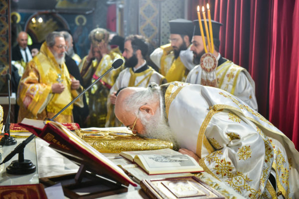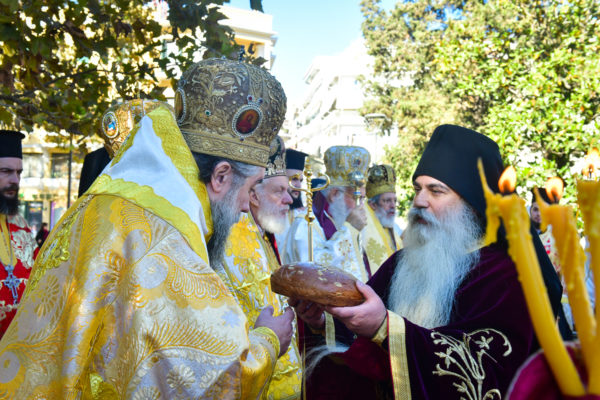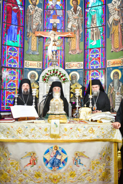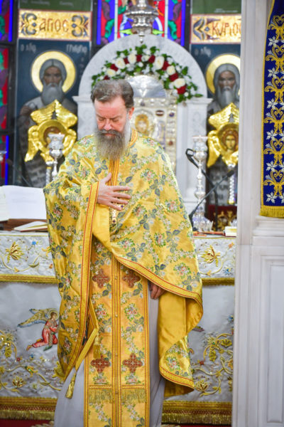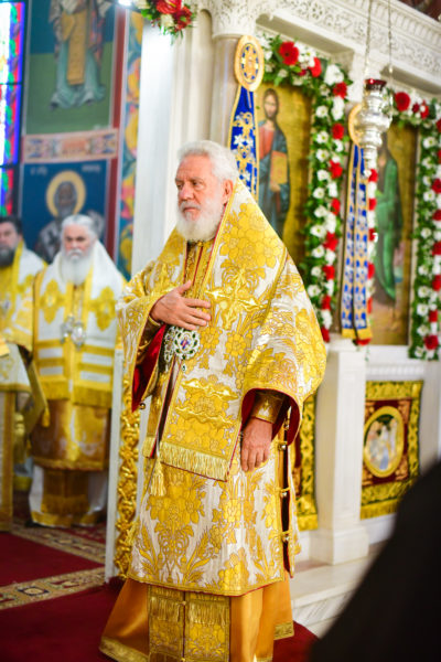 ὡς προεξάρχοντα τῶν λατρευτικῶν καί ἑορταστικῶν ἀκολουθιῶν ἐπί τῇ ἱερᾷ μνήμῃ τῆς Συνάξεως τῶν Παμμεγίστων Ταξιαρχῶν Μιχαήλ καί Γαβριήλ καί πασῶν τῶν ἐπουρανίων Δυνάμεων