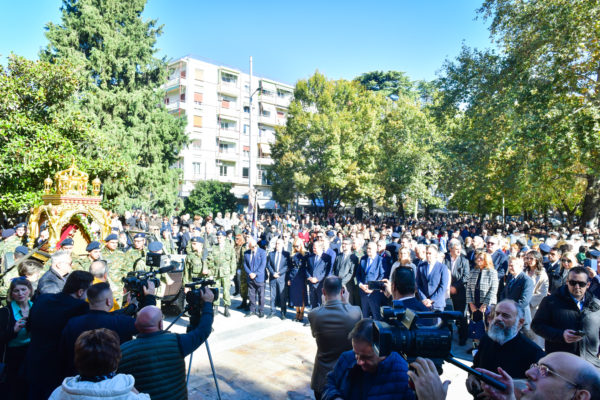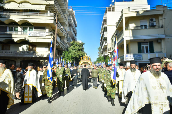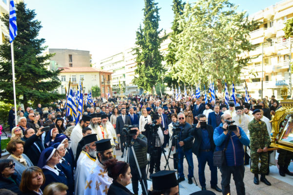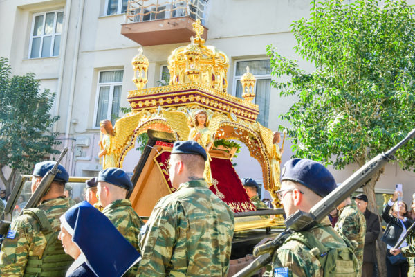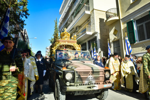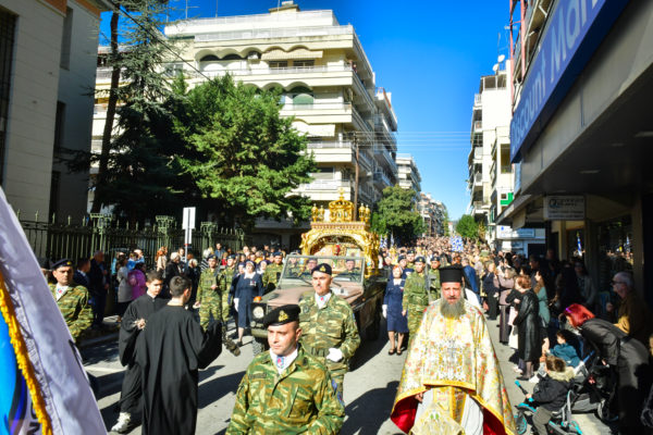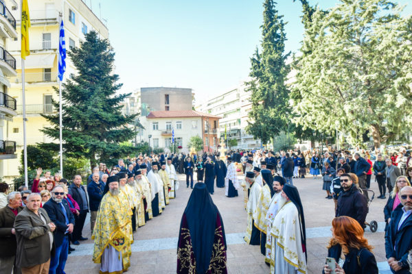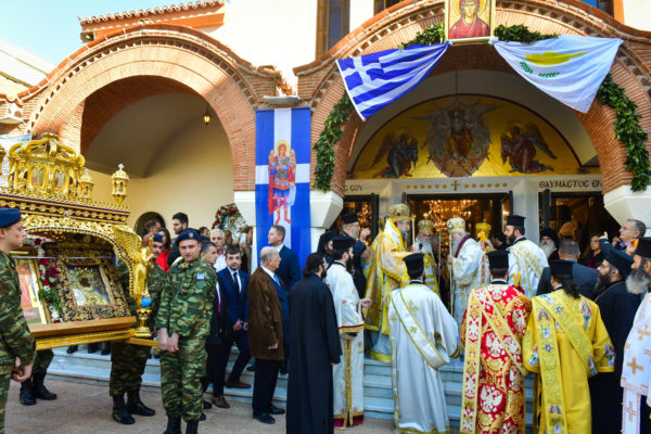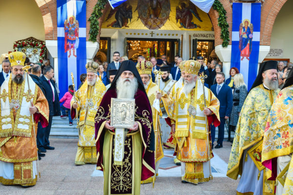 Ακολούθως, πραγματοποιήθηκε η λιτάνευση των ιερών εικόνων της Παναγίας «Χοζοβιωτίσσης» και των Παμμ. Ταξιαρχών και η ευλόγηση της εόρτιαςαρτοκλασίας στην κεντρική πλατεία «Ελευθερίας» της πόλεως των Σερρών.