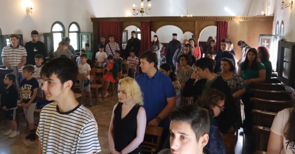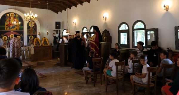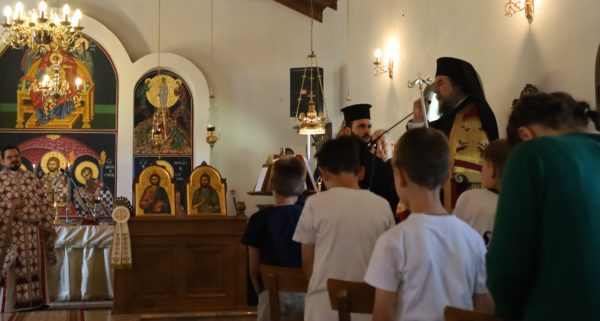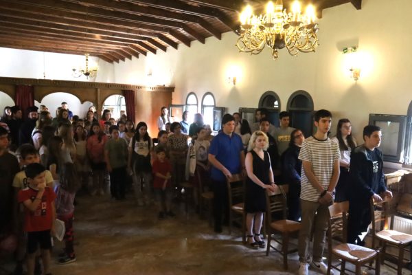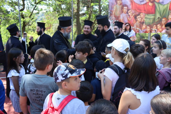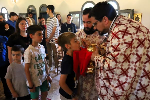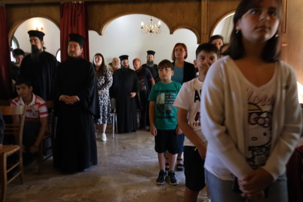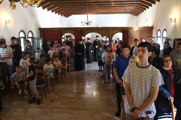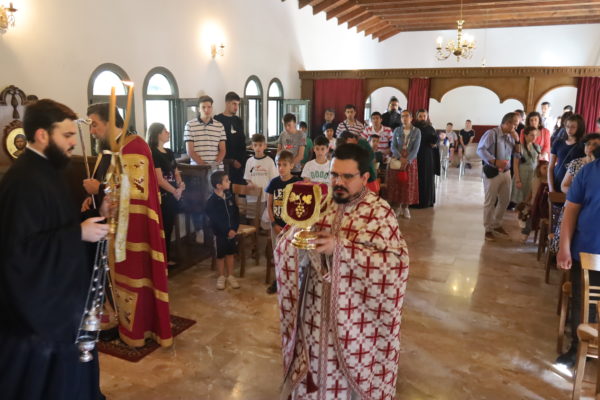 Αρχικώς, τελέσθηκε η θ. Λειτουργία στο ιερό Παρεκκλήσιο των αγίων Αποστόλων και του οσίου Σιλουανού του Αθωνίτου, χοροστατούντος του Σεβασμιωτάτου Μητροπολίτου Σερρών και Νιγρίτης κ. Θεολόγου, με την συμμετοχή των παιδιών, τα οποία προσήλθαν από νωρίς το πρωΐ, συνοδευόμενα από τους υπευθύνους κληρικούς, τις κατηχήτριες και τους κατηχητές τους για να εκκλησιασθούν και να μεταλάβουν από το Ποτήριον της Ζωής.