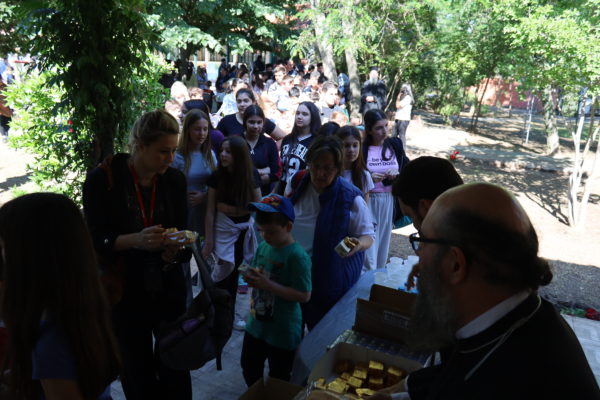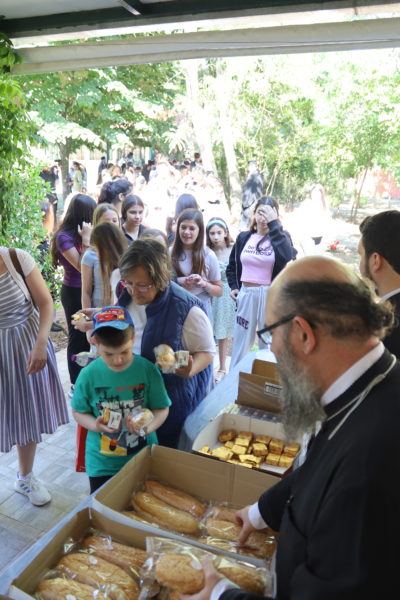 Μετά το πέρας της θ. Ιερουργίας, δόθηκε σε όλους πρωϊνό κέρασμα, το οποίο ετοιμάσθηκε με αγάπη από τις εθελόντριες και τους εθελοντές, που διακονούν στην Κατασκήνωση και ακολούθησε η εκδήλωση με τη συμμετοχή όλων των κατηχητικών συντροφιών των ενοριών της Σερραϊκής Εκκλησίας.