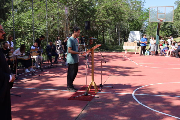 Στη συνέχεια, η νεαροί σπουδαστές του τμήματος προπαιδείας βυζαντινής μουσικής του Μαξιμείου Ιδρύματος της Εκκλησίας των Σερρών, υπό τη διεύθυνση του χοράρχου κ. Γ. Ζαρκαντζά, μέσα σε κλίμα απλότητος και χαράς, απέδωσαν με παλμό και ζωντάνια νεανικά, χριστιανικά τραγούδια, αποσπώντας και δικαίως το χειροκρότημα όλων.