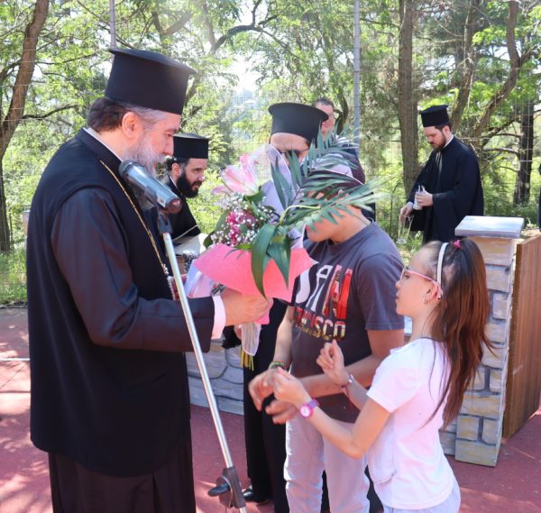 Στη συνέχεια, προσφέρθηκε ανθοδέσμη στον Σεβασμιώτατο, από παιδιά των κατηχητικών, σε ένδειξη αγάπης και σεβασμού της χριστιανικής νεολαίας των Σερρών στον πνευματικό της Πατέρα.