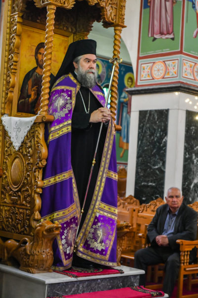 Ο Σεβασμιώτατος, εμπνεόμενος από την σημερινή ιερά διήγηση της θεραπείας του παραλυτικού της Καπερναούμ, από τον Κύριό μας Ιησού Χριστό (Μρκ. β΄ 1-12), απηύθυνε λόγους διδακτικούς προς το πολυπληθές εκκλησίασμα.