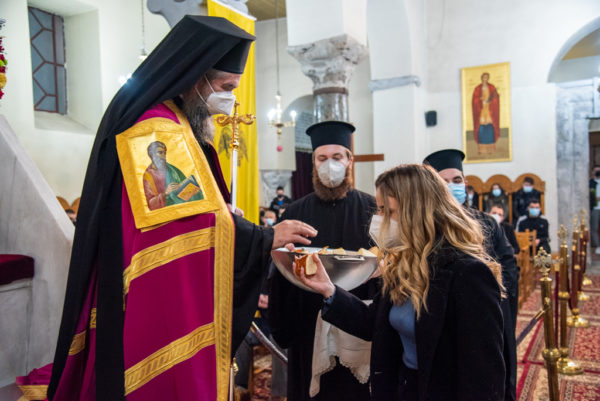 Ο Σεβασμιώτατος, απευθυνόμενος προς το φιλέορτο εκκλησίασμα, υπογράμμισε μεταξύ άλλων και τα εξής: «Να ενθυμείσθε, αγαπητά μου παιδιά, είπε ο Σεβασμιώτατος, ότι οι θύρες της μητέρας μας Εκκλησίας, η οποία αγιάζει, διδάσκει, εμπνέει, αναμένει, σκεπάζει, κατανοεί και συγχωρεί, είναι πάντα ανοικτές για όλους. Πολλές είναι οι στιγμές, που η ζωή μας επιφυλάσσει δυσκολίες, θλίψεις, αντιξοότητες. Μέσα από αυτό τον δρόμο, τον σωτήριο και λυτρωτικό, διήλθαν και οι άγιοι της Εκκλησίας μας, όπως ο άγιος Βασίλειος. Στις δύσκολες αυτές καταστάσεις, χρήσιμο και ενισχυτικό είναι να ενθυμούμεθα ότι η θύρα του Χριστού παραμένει πάντα ανοικτή, χωρίς διακρίσεις και αποκλεισμούς. Το όνομα του Χριστού είναι συνώνυμο της αληθείας, της στοργής, της ζωής και της αγάπης, το δε κάλεσμά Του καθολικό και σωτήριο».