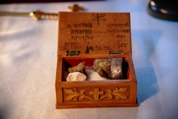 Σε ανάμνηση της σημερινής εορτίου αυτής ημέρας ο Σεβασμιώτατος προσέφερε στην ιερά Μονή από το προσωπικό του ιεροφυλάκειο χαριτόβρυτα ιερά λείψανα του Αγίου αποστόλου Ανδρέου του Πρωτοκλήτου, του Αγίου Χαραλάμπους του θαυματουργού και τεμάχιο λίθου από τον Πανάγιο Τάφο του Χριστού, το οποίο του το προσέφερε ο Μακαριώτατος Πατριάρχης Ιεροσολύμων κ. Θεόφιλος. Στα ιερά λείψανα των αγίων, όπως αναφέρει ο Άγιος Γρηγόριος ο Παλαμάς παραμένει «ανεκφοιτήτως» η παντοδύναμη αγιαστική και φωτιστική θεία Χάρις.