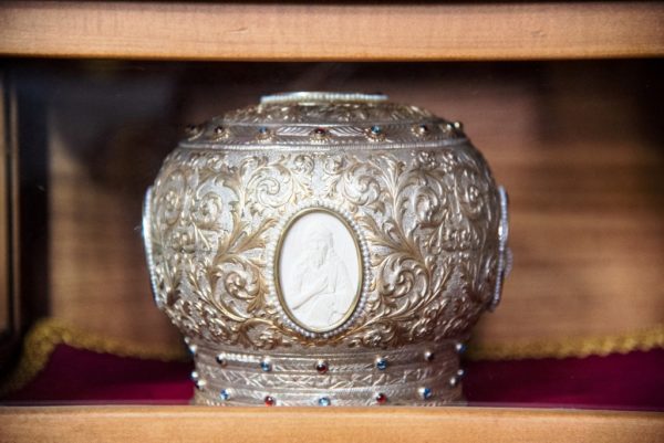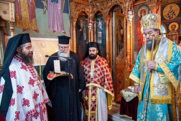 Σε ανάμνηση της σημερινής εορτίου αυτής ημέρας ο Σεβασμιώτατος προσέφερε στην ιερά Μονή από το προσωπικό του ιεροφυλάκειο χαριτόβρυτα ιερά λείψανα του Αγίου αποστόλου Ανδρέου του Πρωτοκλήτου, του Αγίου Χαραλάμπους του θαυματουργού και τεμάχιο λίθου από τον Πανάγιο Τάφο του Χριστού, το οποίο του το προσέφερε ο Μακαριώτατος Πατριάρχης Ιεροσολύμων κ. Θεόφιλος. Στα ιερά λείψανα των αγίων, όπως αναφέρει ο Άγιος Γρηγόριος ο Παλαμάς παραμένει «ανεκφοιτήτως» η παντοδύναμη αγιαστική και φωτιστική θεία Χάρις.