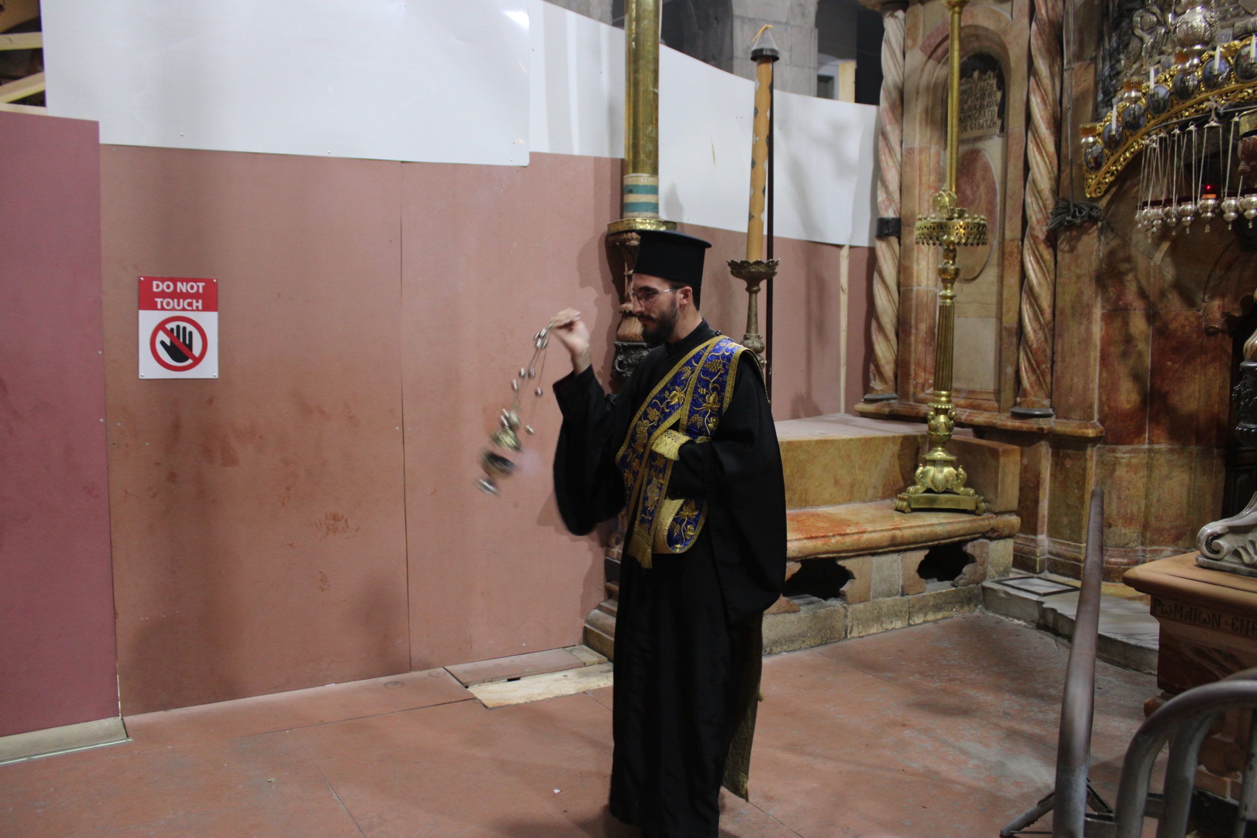 Ο Πατριάρχης Ιεροσολύμων Θεόφιλος και η Αγιοταφική Αδελφότητα προσεύχονται στον Πανάγιο Τάφο για την ενίσχυση των πυροπαθών στη χώρα μας.