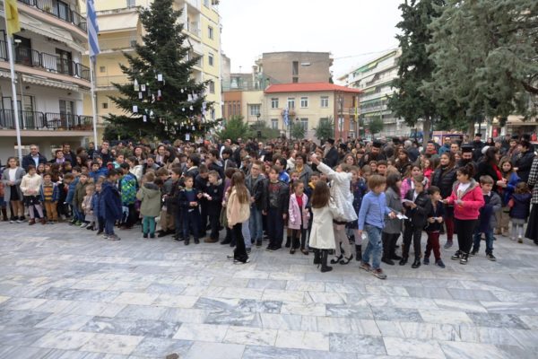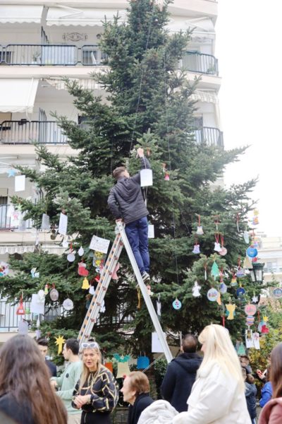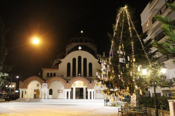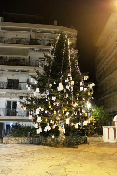 Το φυσικό έλατο στην πλατεία του ιερού Μητροπολιτικού Ναού, που φύτευσε προ 15ετίας ο Σεβασμιώτατος κ. Θεολόγος, δέχθηκε τα στολίδια με τις προσωπικές ευχές, που τα ίδια τα παιδιά ετοίμασαν για να το στολίσουν.